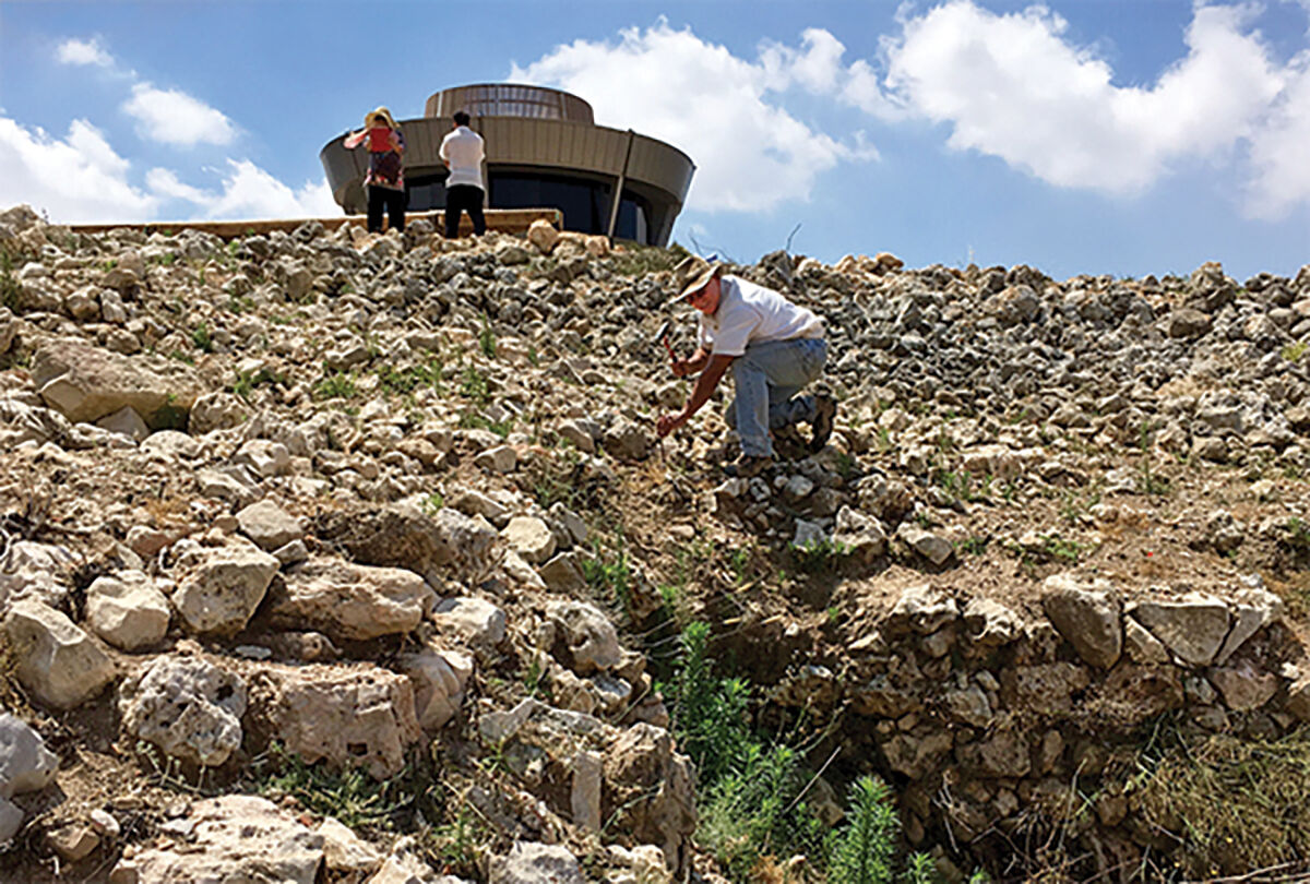 SS: Professor Finkelstein’s view was that the tabernacle had been on the summit of the tel. He believed the Israelites arrived around 1200 b.c.e. There was all this material from Canaanite sacrifices that had been piled up for hundreds of years. I suppose he envisioned that in Canaanite temples they just had big mounds of bones. He thought they removed them from the summit and dumped them all here on the edge of the tel all at one time, and so the favissa was created in 1200, the very end of the Late Bronze Age. What we have found is different from that. We have seen microstratigraphy; you can see it in the balk. There are bones sticking out of the balk, and there are layers and so forth within that. The pottery is Late Bronze Age ii, not Late Bronze Age i. He thought it was a Canaanite sacrificial system. Our view is that it synchronizes perfectly with the biblical sacrificial system. The bones coming out of this core favissa are 99.9 percent kosher as per our zooarchaeologist Prof. Haskel Greenfield. The pottery is all Late Bronze Age ii pottery. The stratification, the dating of the pottery, the radiocarbon dating, which they did not do in the 1980s and which we are now doing, all point to deposition over time. In my view, the Israelites arrive here at the beginning of the 14th century, and it matches very well with that.