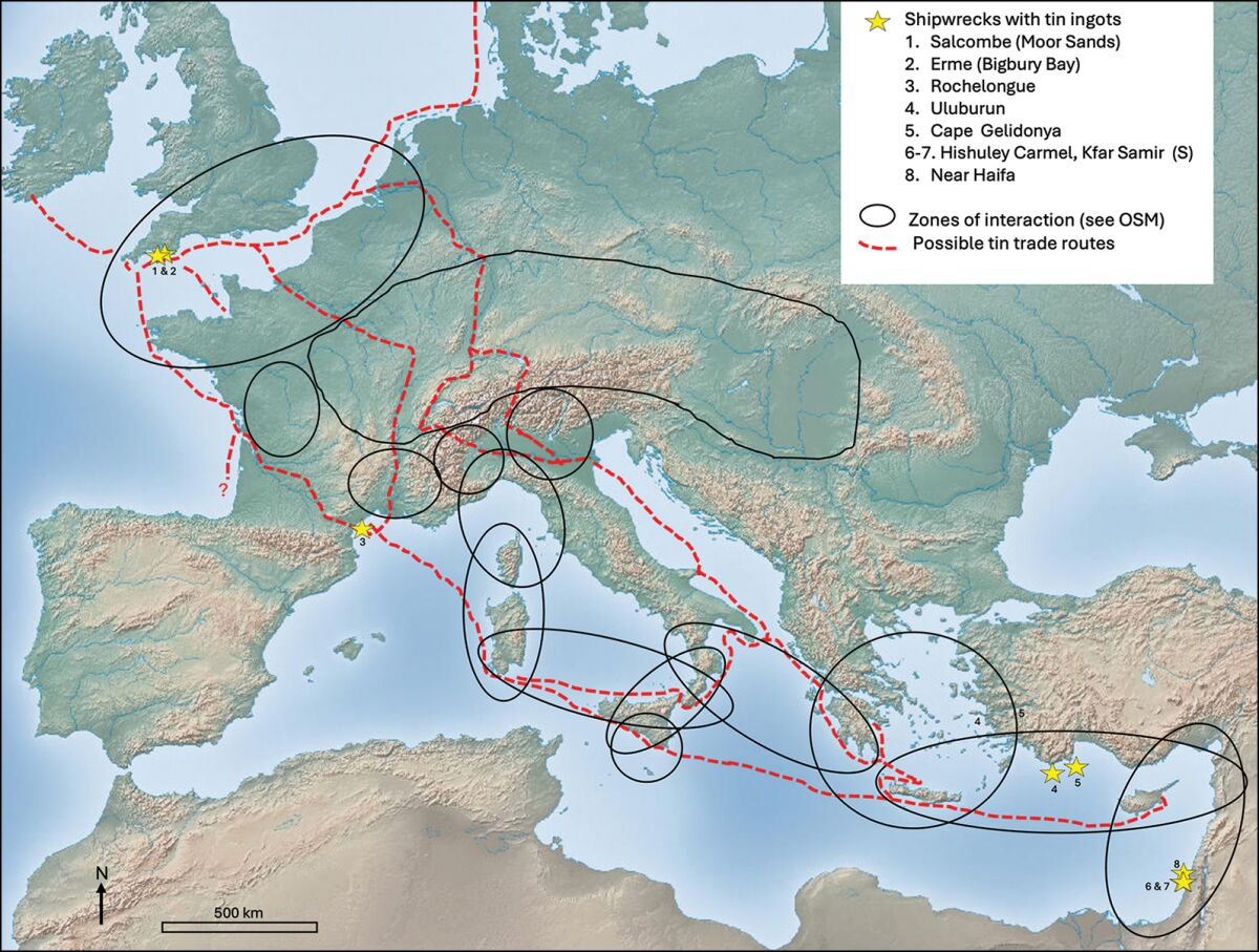 Based on archaeological finds extending from Britain to the Mediterranean, the researchers were able to determine that the trade of tin began to flourish between 1500–1300 b.c.e.