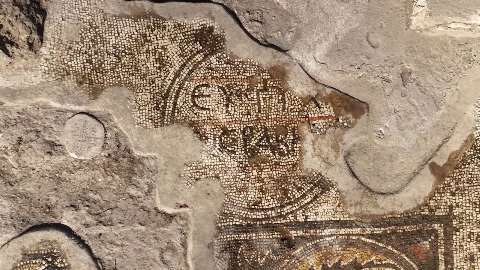 In one of the buildings, excavators uncovered well preserved mosaics. The size of the rooms within this building are large for the time period, which indicates this was an important building. Mosaics at the entrance of the building read, “Congratulations,” followed by the name of the owner—a common practice among the Greeks when a new building was established.