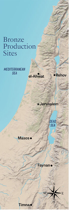 Thus, around 1000 b.c.e. both mines were operating on the same shared knowhow, indicating a single polity was controlling both. This material change runs concurrently with the relatively short window that bronze from Faynan and Timna appeared in el-Ahwat, toward Israel’s north, for bronze production.