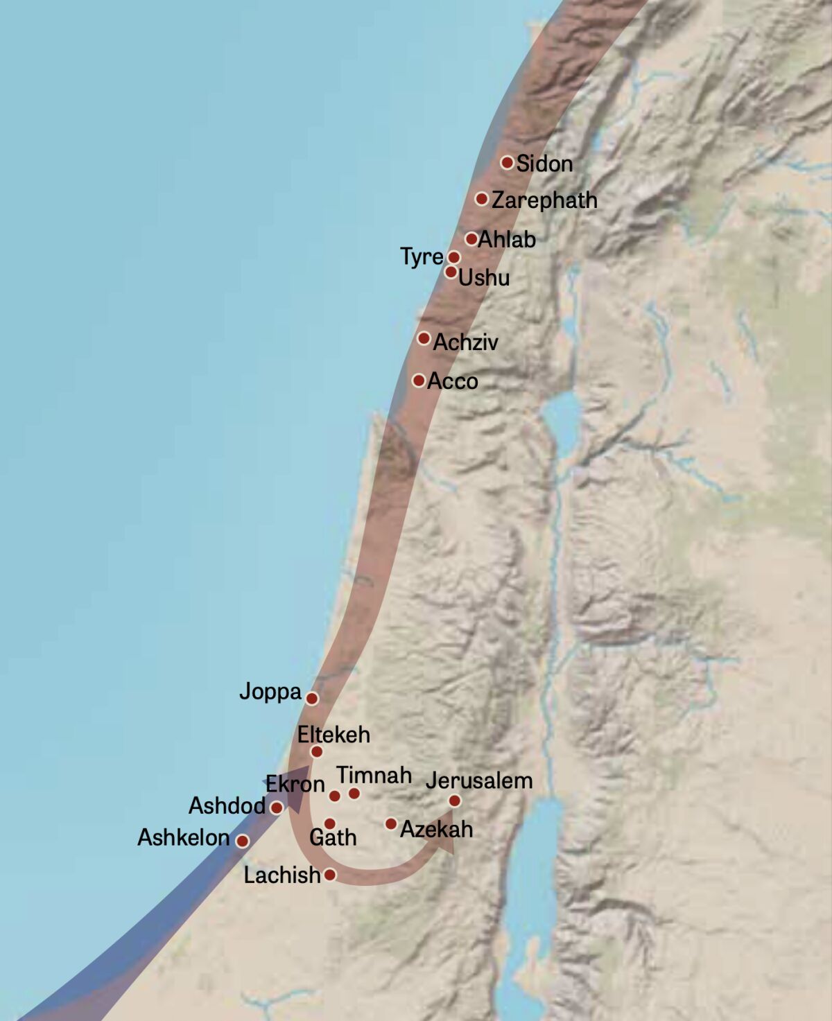 According to the annals, Sennacherib conquered the Levant by moving from north to south. First, he destroyed eight strong-walled cities of Phoenicia, then conquered the cities of the Philistines, including engaging in a major open-field battle near Eltekeh against the Egyptian-Cushite army. Finally, the annals record Sennacherib’s subjugation of 46 strong-walled unnamed cities of Judah under the leadership of “Hezekiah of the land of Judah.”