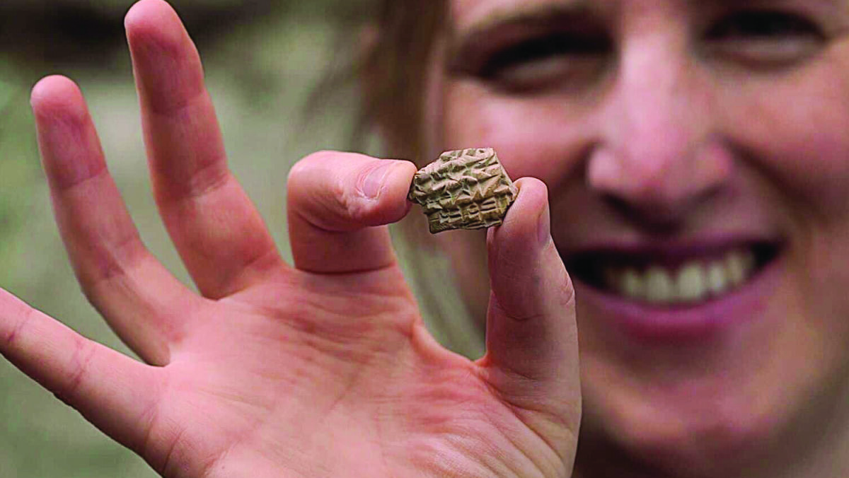 The miniature 2.5-centimeter inscription, which dates to between the eighth and seventh centuries b.c.e., bears the iconic cuneiform (wedge-impressed) script in the Akkadian language of the Assyrian Empire. The fragment was discovered by Moriah Cohen while she was wet-sifting earth from the ongoing iaa excavations along the western edge of Jerusalem’s Ophel, under the direction of Dr. Ayala Zilberstein.