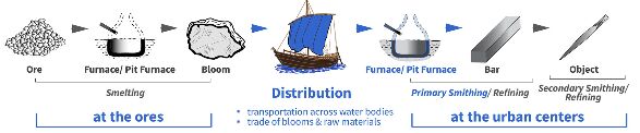 It was long assumed that iron was not transported in the form of blooms, as the cooling of an unworked bloom was viewed as inefficient. Instead, it was suggested that primary smithing was typically performed by hammering the bloom while it was still hot, and that iron was usually transported and traded in the form of semi-finished or finished products, as billets.