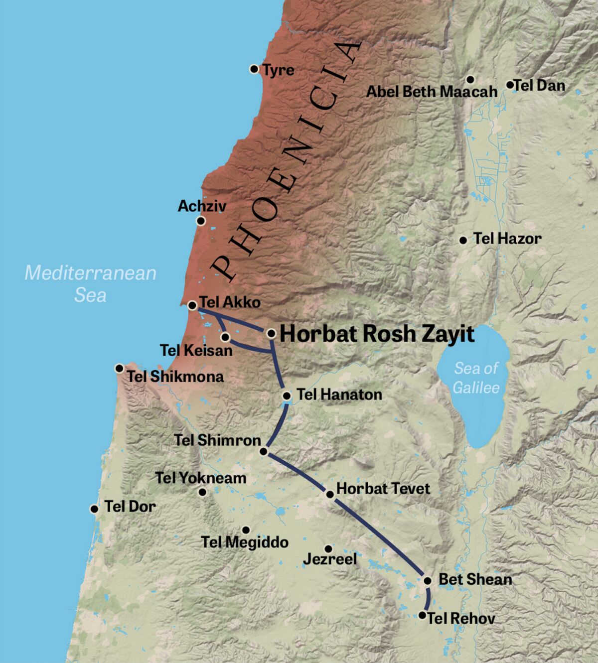 But among allies, things would be different. Such a scenario is expected between the Israelites and the Phoenicians, and not just along the places of exchange at the border towns but also at sites along the main trade routes between the two powers. This is likely why Tel Rehov, a key Iron iia trade center 50 kilometers (30 miles) away, also features a similar Phoenician-Cypriot assemblage. Tel Rehov excavator Amihai Mazar drew attention to the largely parallel assemblage between the sites and posited that a trade route ran from the southern Phoenician coast through Horbat Rosh Zayit and eventually arrived at Tel Rehov via Horbat Tevet and Beth-Shean (“On the Relations Between Phoenicia and the Beth-Shean Valley in the Iron Age,” 2022).