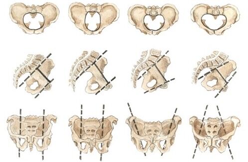 Four main types of female pelvis. Left to right: Gynaecoid, Anthropoid, Android, Platypelloid. The Gynaecoid pelvis allows for the easiest birth.