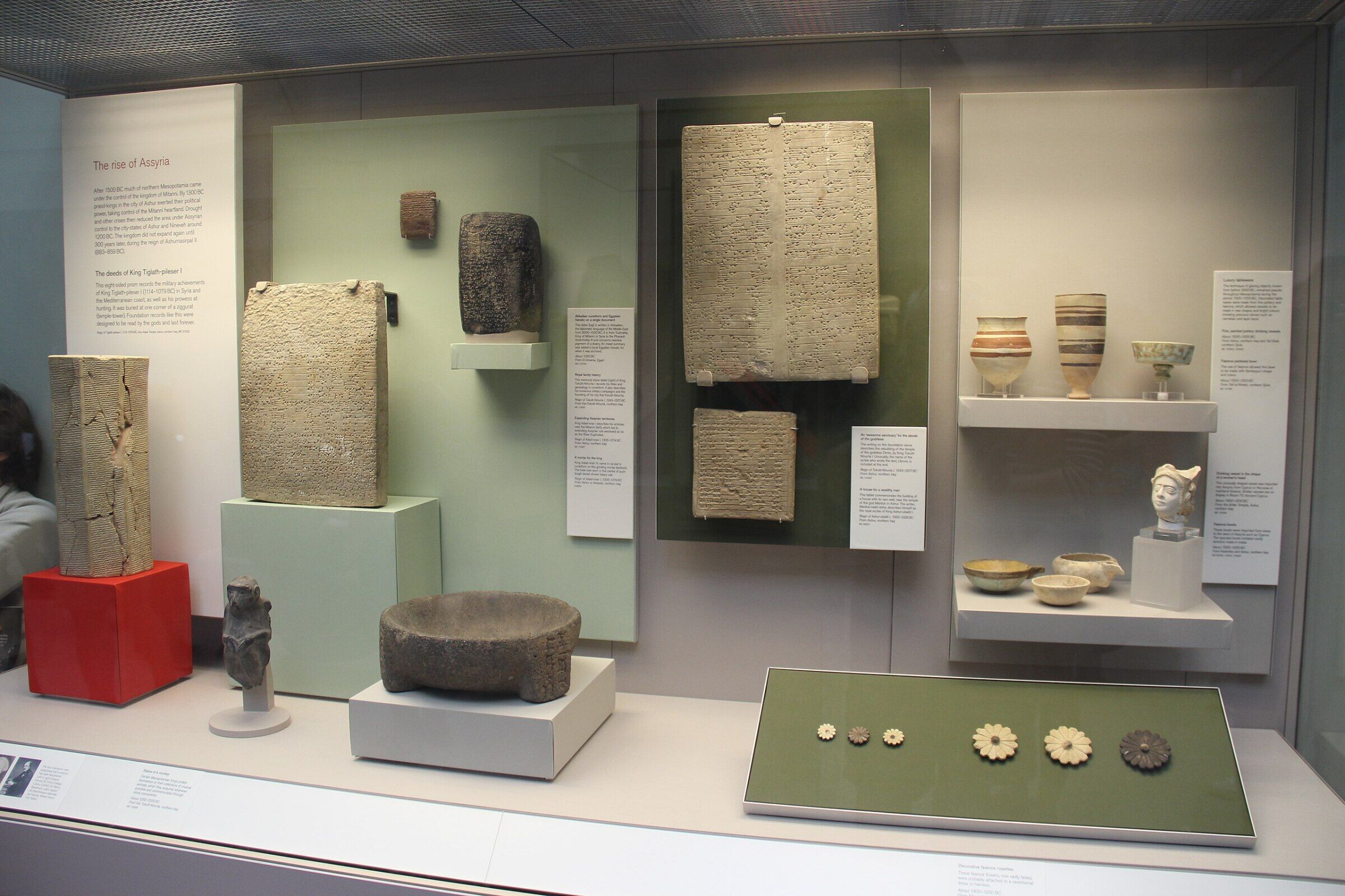 Artifacts from the Middle Assyrian Empire (British Museum, London). Note the smaller square tablet in the center: This is a document from the reign of Assur-uballit I, contemporary of Burna-buriash II.