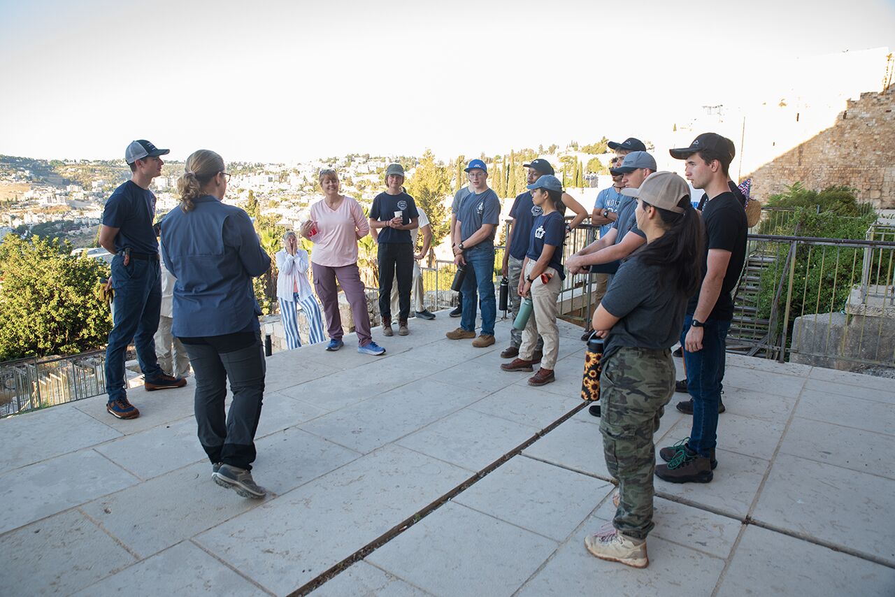 July 6 | Dr. Orit Peleg-Barkat leads volunteers around the Ophel for a brief history and education on where they are digging.