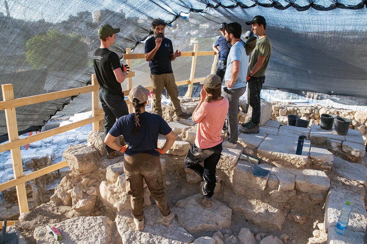 July 7 | Area D supervisor Amir instructs his crew on the demolition of the Byzantine floor they are standing on.