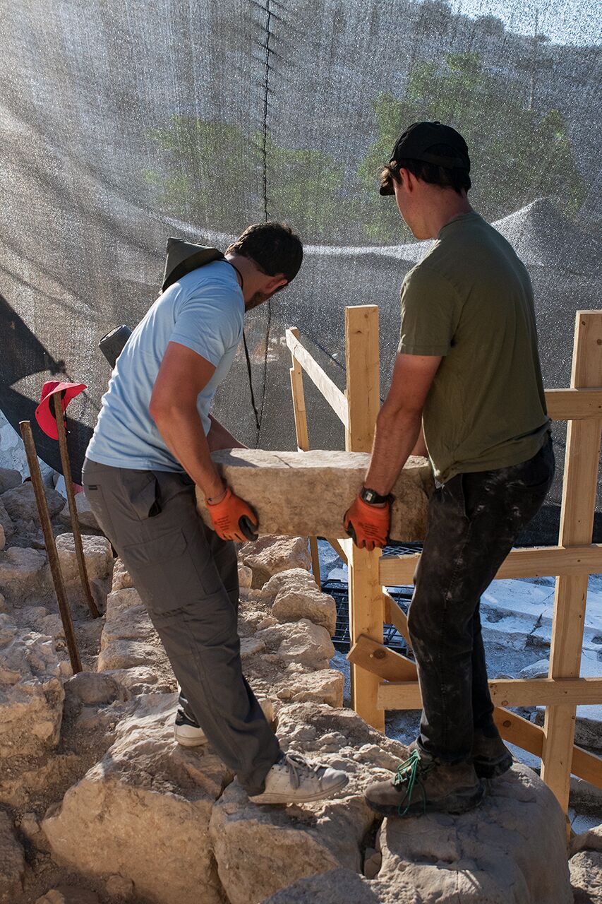 July 7 | Caleb and Eben carry out a large stone from the Byzantine floor.