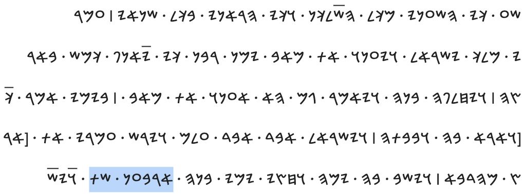 The passage in question on the Mesha Stele, beginning with the last word on the left side of the top line (“Omri”) and ending with the highlighted words (“forty years”).