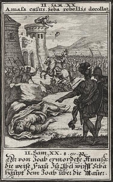 17th century woodcut portraying the events of 2 Samuel 20 at Abel Beth Maacah