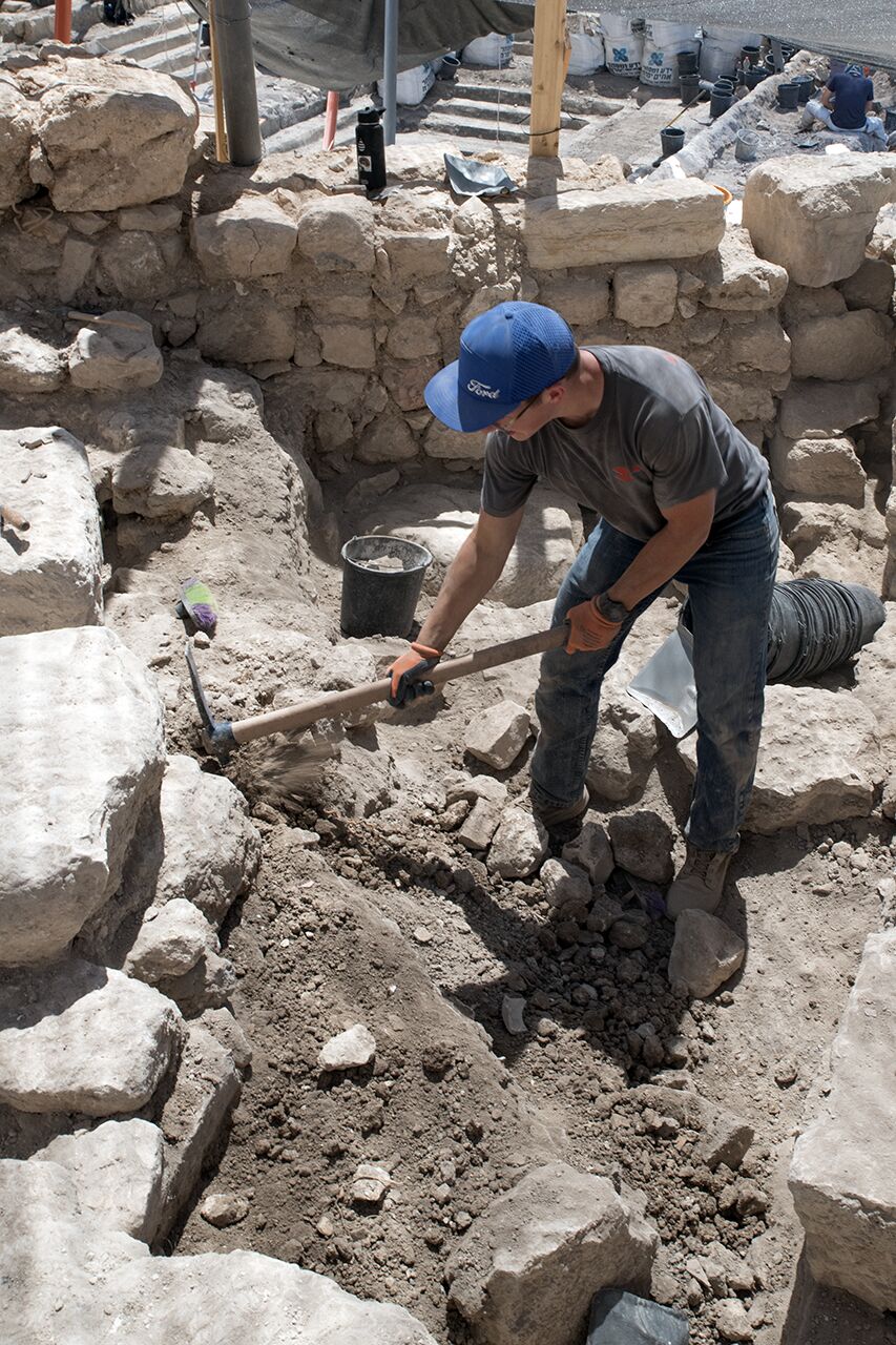July 13 | Luke uses a large pickax to excavate in Area D.