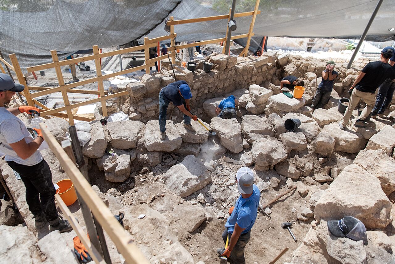July 15 | Luke hammers at a large boulder in Area D as Brett waits for his turn.