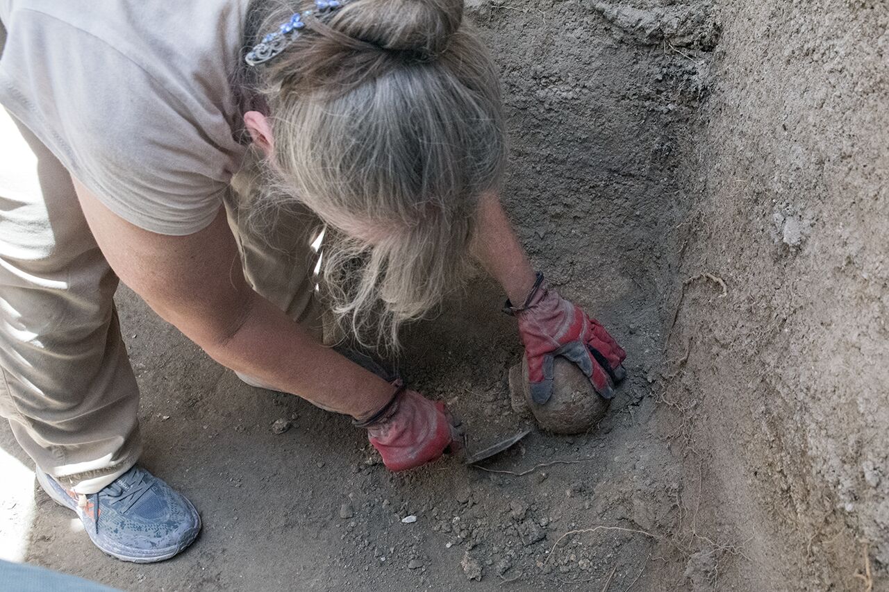 July 15 | Laurie carefully removes a small pot discovered in a mikveh.
