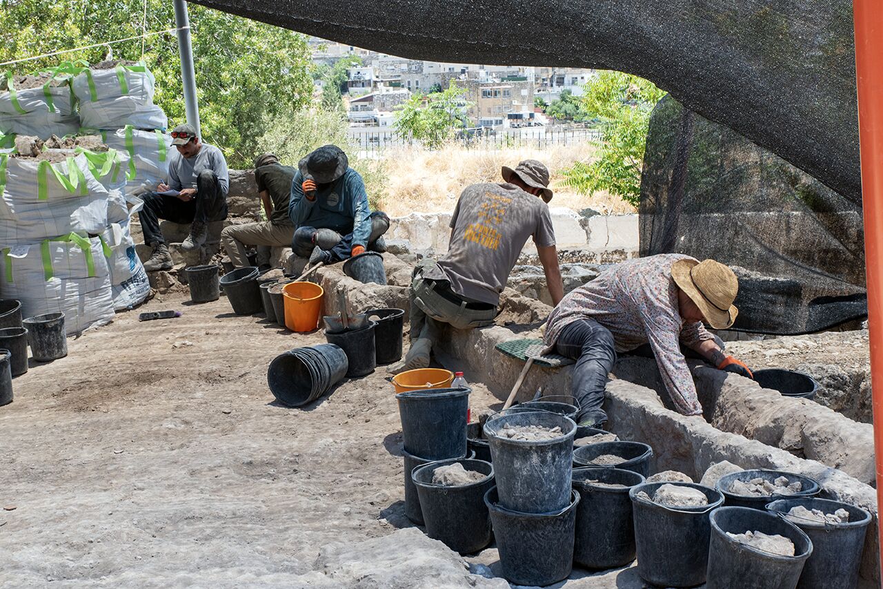 July 16 | Workers in Area P excavate fill from a wall.