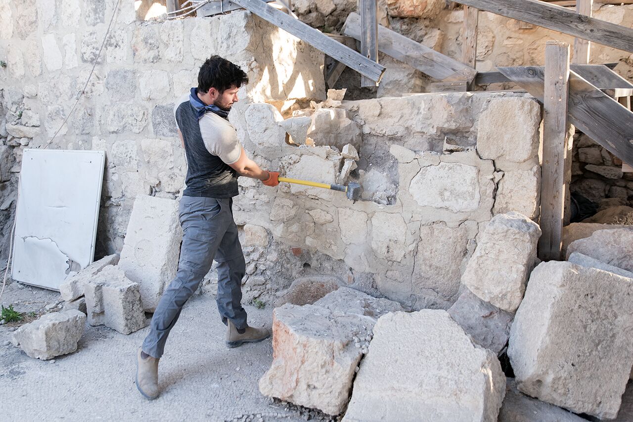 July 17 | Caleb dismantles a modern wall between Area D and Area D1.