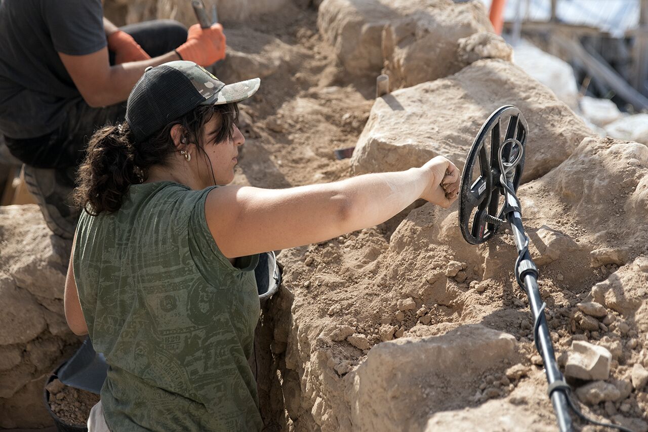 July 20 | Christina waves a fistful of dirt by the metal detector to find an elusive metal object—likely a coin.