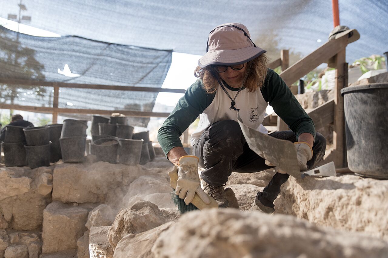 July 20 | Jill balances in a squat while excavating in Area D1.