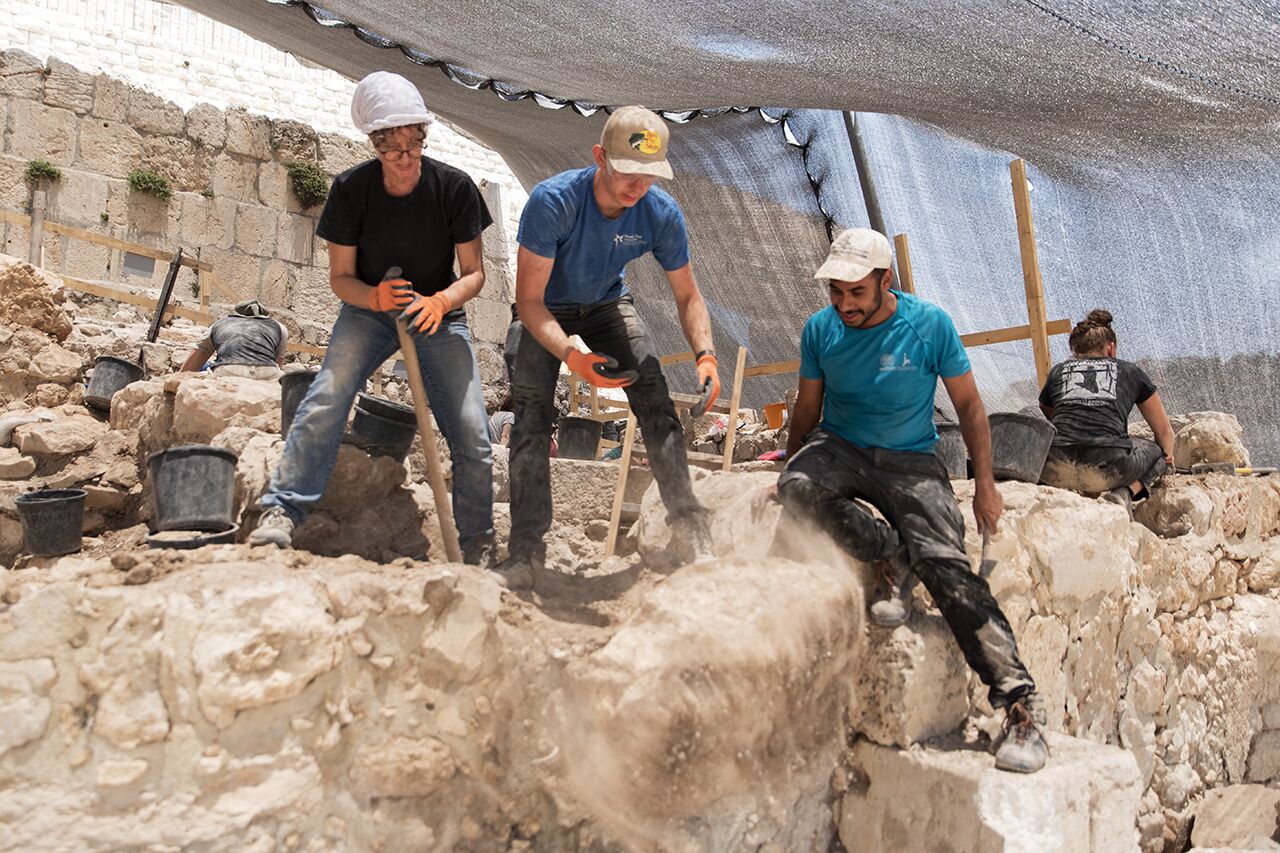 July 21 | Eva and Jude dislodge a massive stone from the southern wall of Area D as Aviv watches.