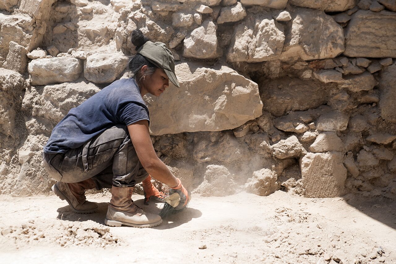 July 24 | Bea sweeps mosaic tile between Area D and Area D1.