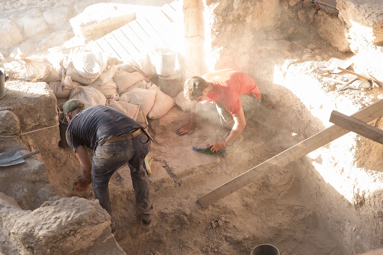 July 28 | Brent and Brett stir up dust while cleaning the mikveh leading into Area D.
