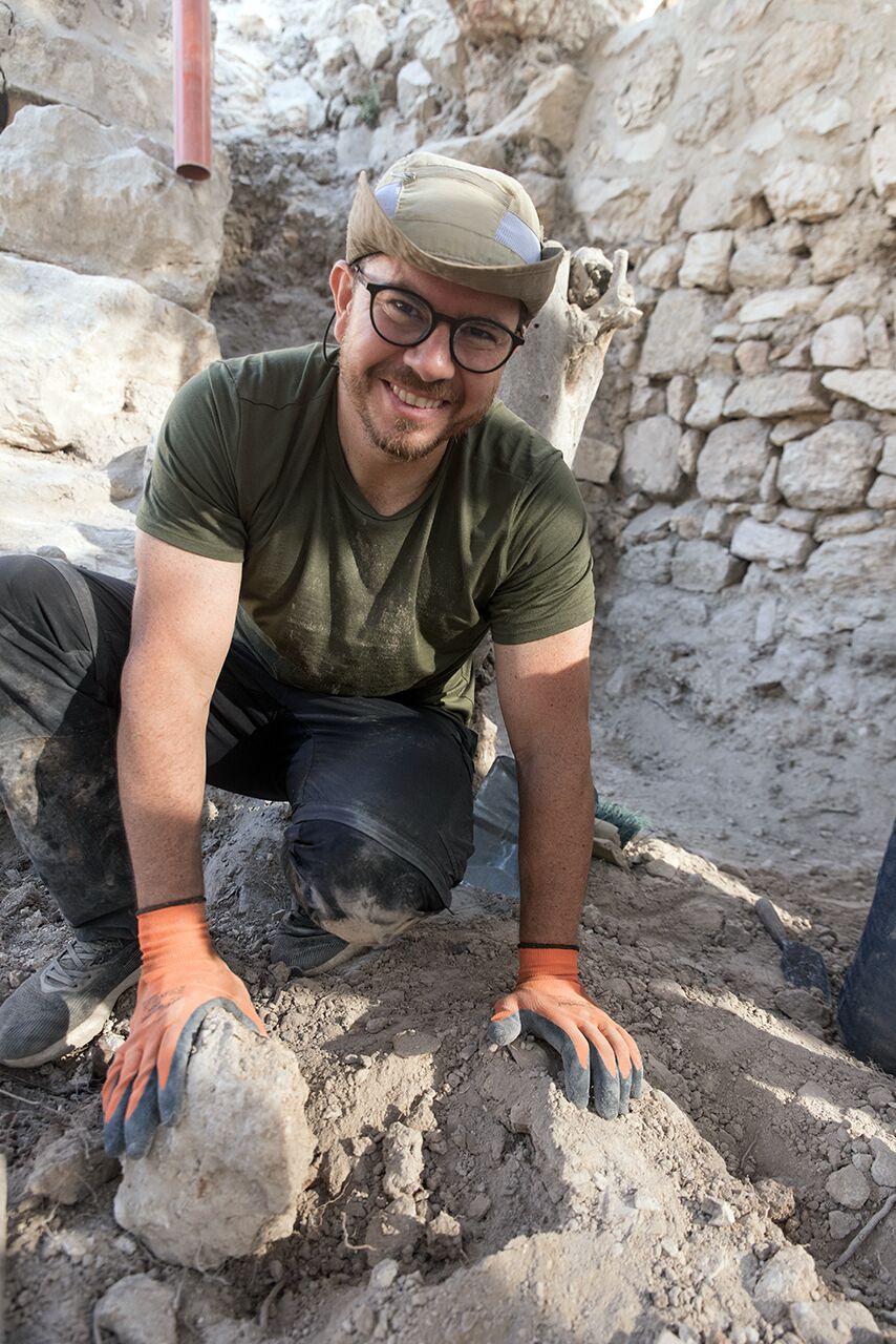 July 29 | Ricardo pauses to smile for the camera as he excavates in Area D1.