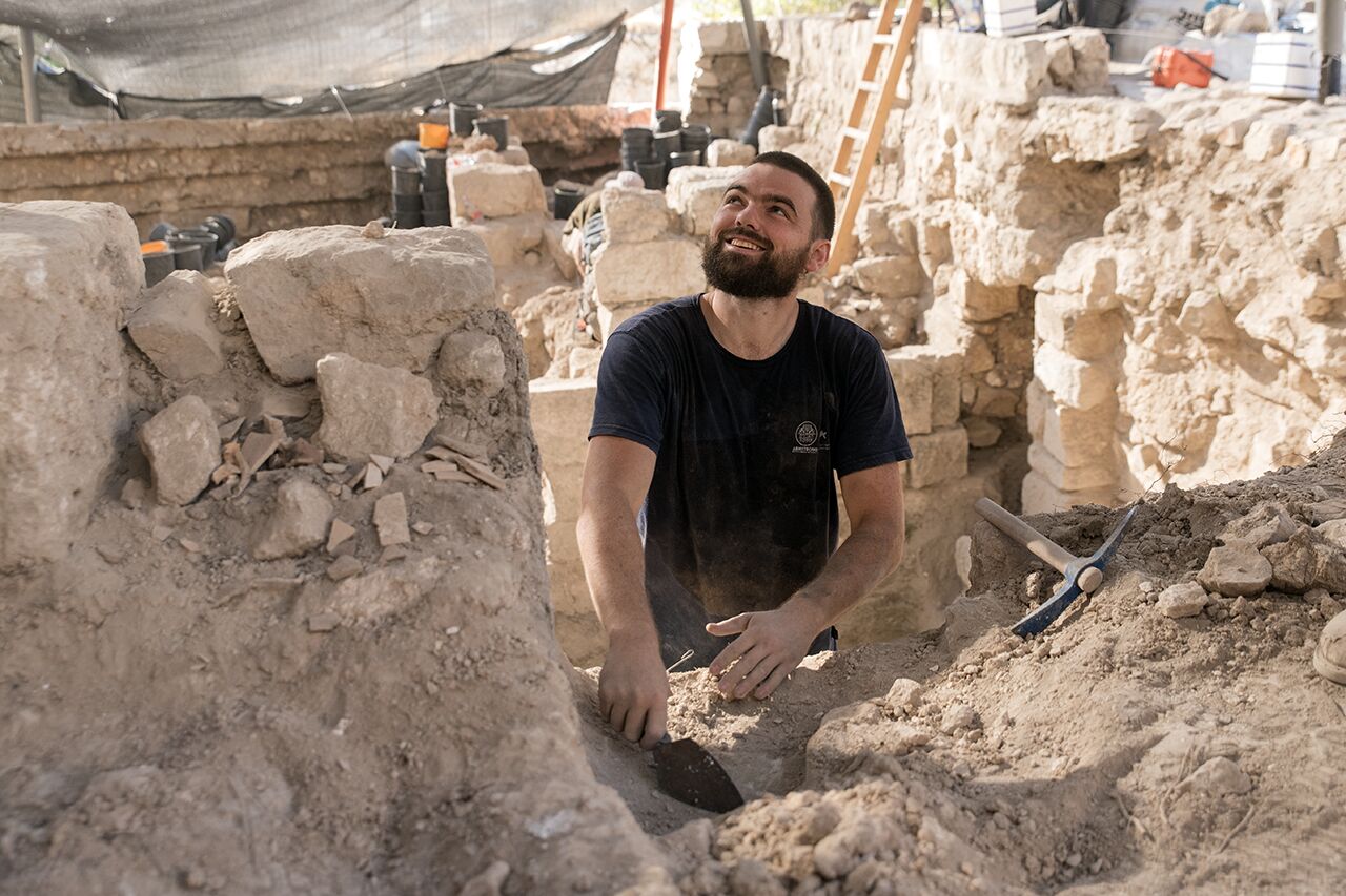 July 29 | Chris looks up at Uzi (not pictured) as they discuss the area he’s excavating.