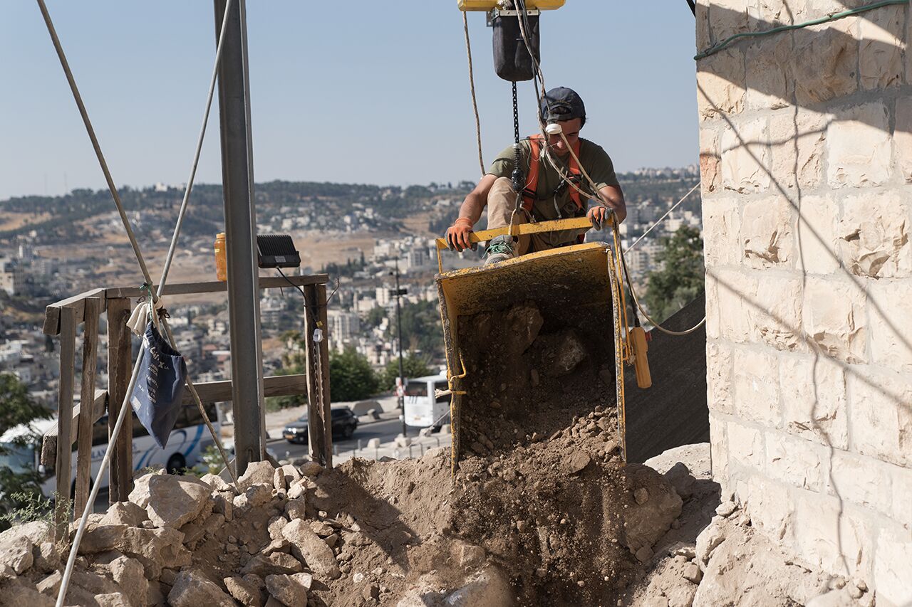 July 29 | Adam dumps dirt from Area D for the tractor to haul away.