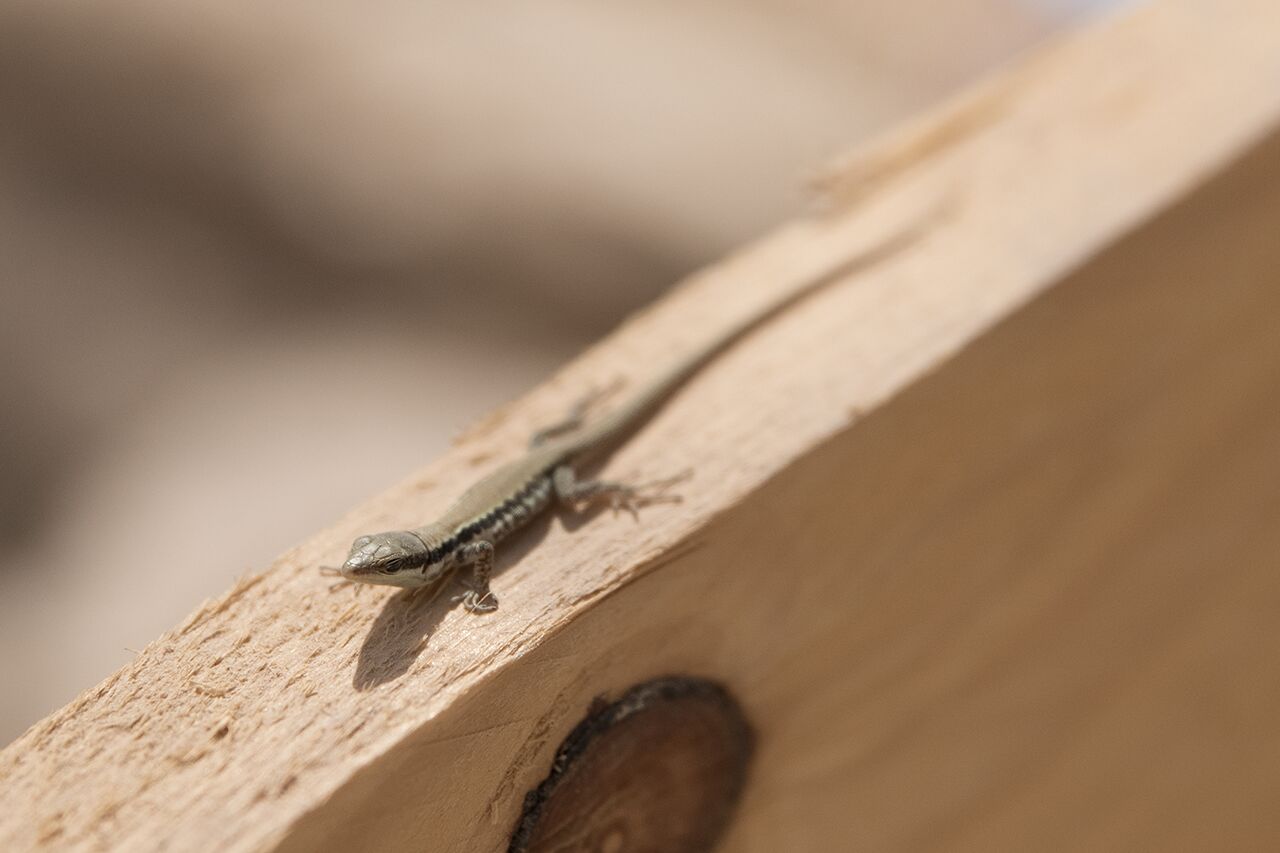 July 30 | A teeny-tiny lizard walks across the railing in Area D.