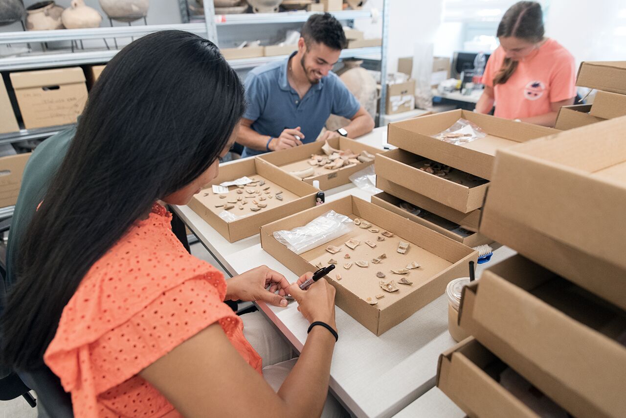 August 14 | Bea works through a bag of pottery sherds, labeling each piece.